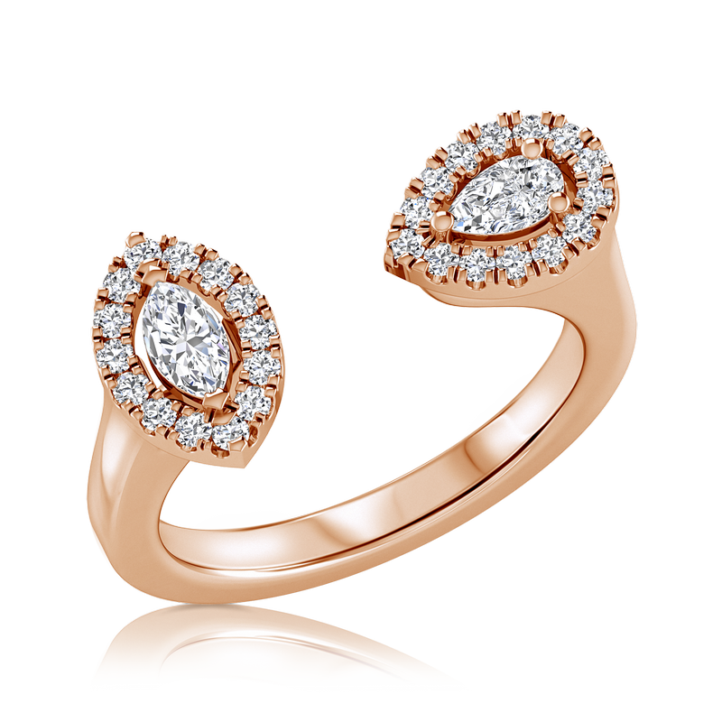 0.50 קראט יהלומים, משובצת ביהלומי טיפה ומרקיזה ובנוסף יהלומים מסביב,
